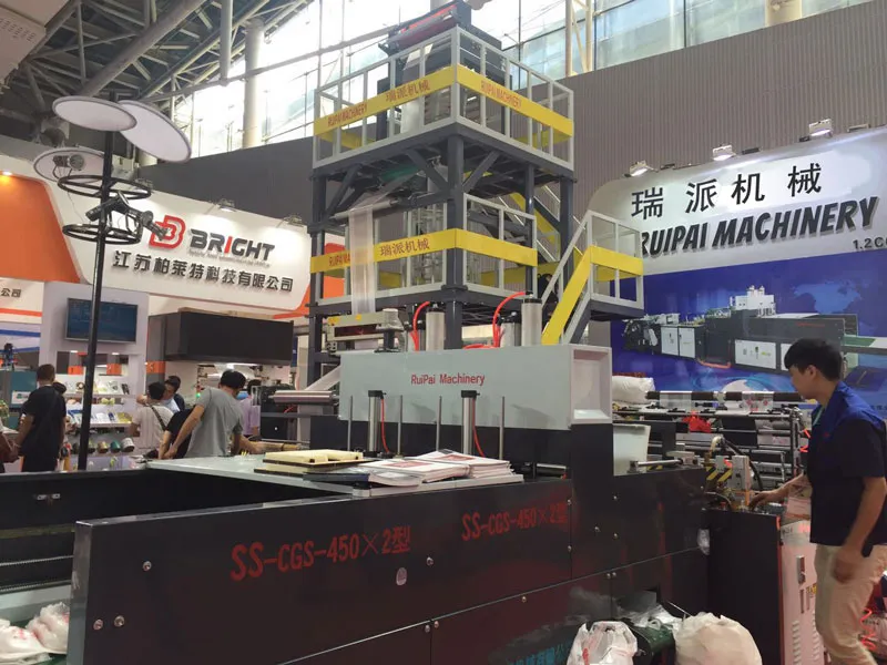 2017.5 Ruipai machinery in Chinaplas, we show ABA film extruder and super speed T shirt bag making machine in the fair. The booth number is 1.2C61