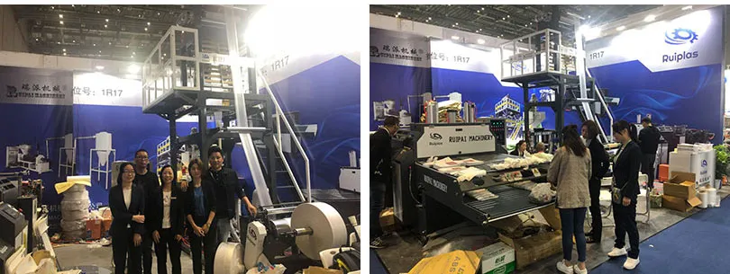 2018.4 Ruipai machinery in Chinaplas, we show mono layer high speed HDPE film extruder and 4 lines high speed cold cutting machine. The booth number is 1R17